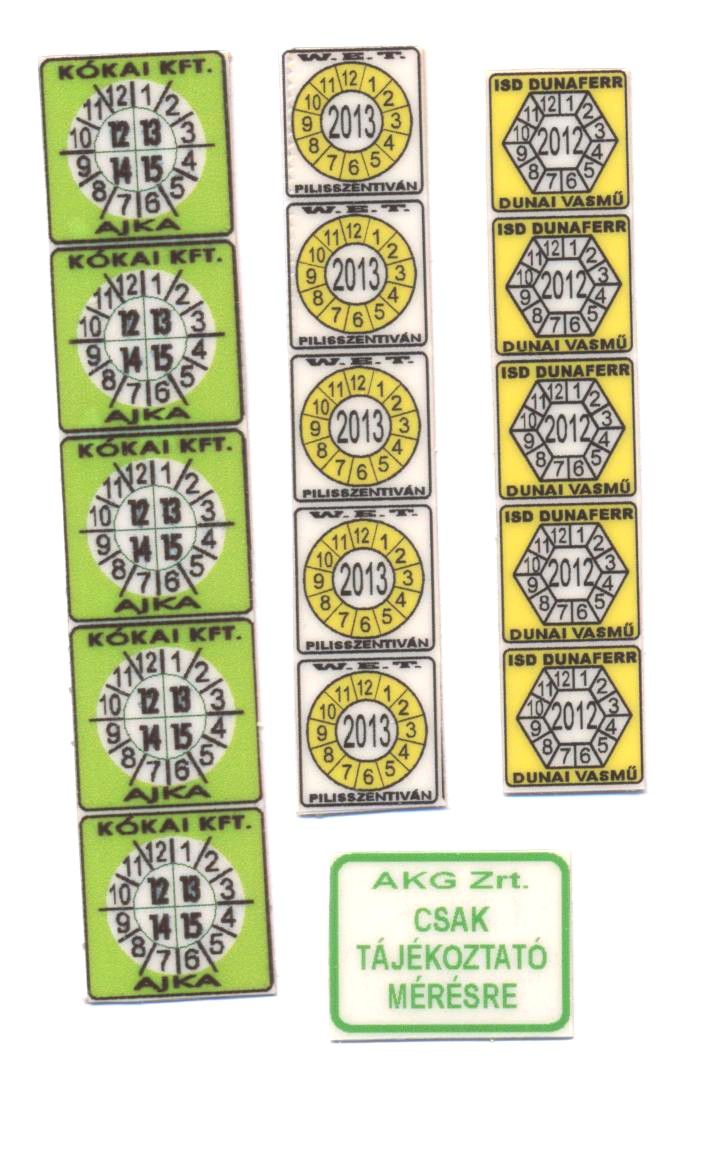 Szabványosság: Megfelel az ISO 9001 szabványban jelzett ISO 10012 „Minőségbiztosítási Követelmények Mérőberendezésekre” c. szabvány 3.5. pontban rögzített KONFIRMÁLÁSI időhatárt jelölő címke követelményeknek.
